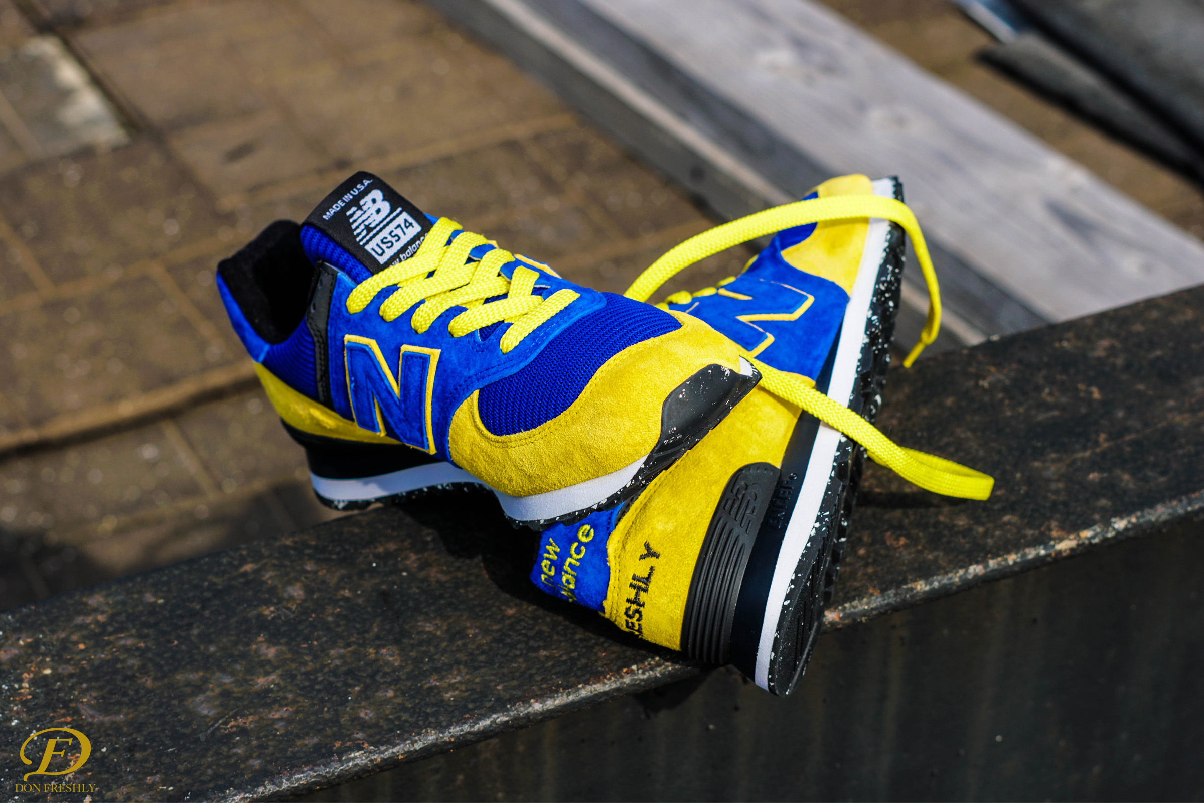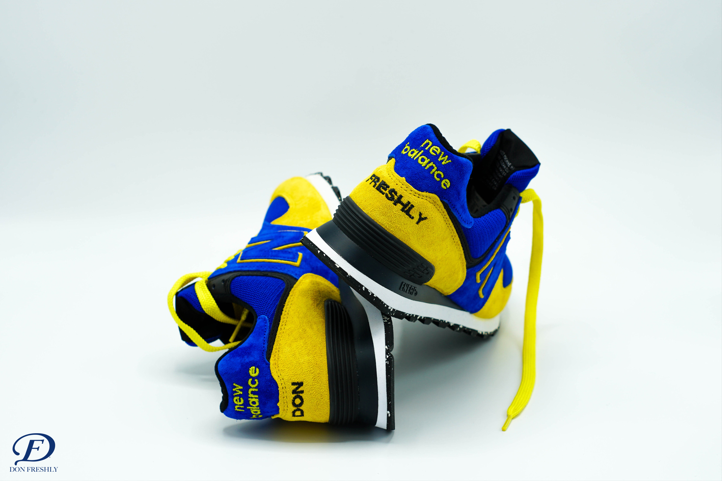New Balance 574 Infused with Don Freshly's Signature Colorway. Drawstring Bag & T-Shirt included with Care Package.